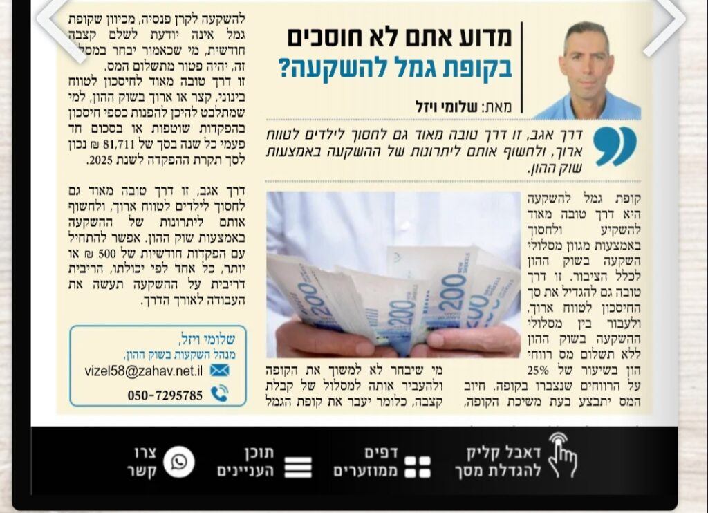 כתבה מיום 17 למאי, האם נצטרך לעבוד כל החיים?